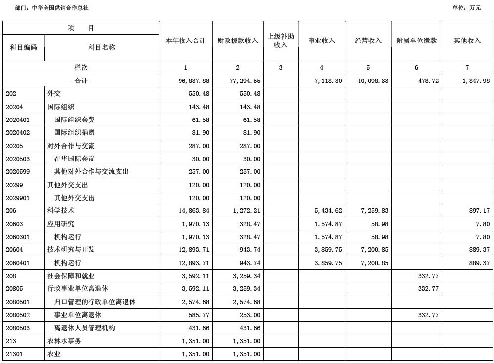 注:中华全国供销合作总社没有政府性基金收入,也没有使用政府性基金安排的支出,故本表无数据。