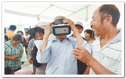 在安徽省安庆市岳西县,几位村民正通过VR(虚拟现实)眼镜选购时尚家电。人民视觉