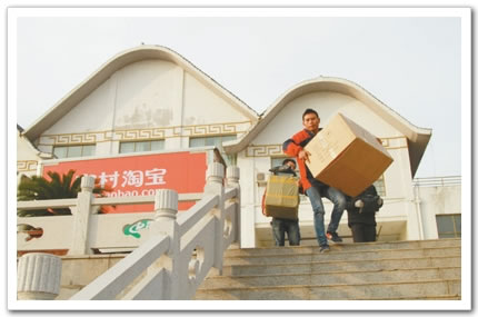 在江苏省泗洪县半城镇,阿里巴巴农村淘宝合伙人正在送快递。人民视觉