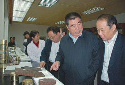 位于美丽的西子湖畔的杭州茶叶研究院是全国茶叶重要的科研机构,也是总社近年来在科研及科技推广工作中取得显著成效的一家科研单位。14日下午,李成玉一到杭州,不顾旅途疲劳,便在浙江省委副书记夏宝龙的陪同下,来到该院考察。在听取了毛志方院长的工作汇报后,李成玉对该院近年来的改革发展给予了充分肯定。他指出,我们一直强调科研机构要产学研相结合、走一体化发展的路子,杭州院在这方面做得很不错,通过与不同所有制的市场主体合作开展项目,扭转了前些年的困难局面,变化可喜。现在茶叶市场的发展形势很好,国内外市场对茶叶的需求量很大,前景广阔。农副土特产一直是供销合作社的强项,在茶叶产业化发展上我们的步伐一定要加快。现在社会各方面对食品安全性的要求越来越高,杭州院拥有国家级的茶叶质量监督检验中心,科研实力强、权威性很高,政府、企业都非常需要,要紧密结合当前进行的学习实践科学发展观活动,开展深入讨论,进一步解放思想,扎实做好基础工作,建立良好的内部机制,在改革发展中创出新的佳绩。
