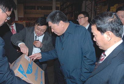 李成玉在苏果集团配送中心察看商品管理