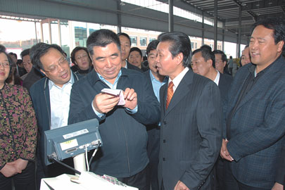 15日下午,根据系统企业工作会议的日程安排,李成玉带领全体与会代表,到系统百强企业杭州市供销合作社果品集团有限公司果品市场、浙江省农资公司和浙农所属新光塑料有限公司参观考察。在果品市场,看到色彩丰富、品种繁多的南北水果和整洁宽敞的经营环境,李成玉十分高兴。对杭州市供销合作社发挥传统优势,作大作强果品业务表示赞赏。他一边参观,一边和果品市场负责人及随行人员交谈,勉励大家进一步抓住机遇,更好地为果农服务,为城市消费者服务。在市场电子交易平台前,他详细询问交易办法和交易规则,市场负责人一一作了回答并实地进行了操作演示。李成玉说:“传统业务和现代科技结合,既能确保交易的公正、公道、公平,又减少了传统手段的繁琐,降低了差错,值得推广。办市场就要更多地考虑买卖双方的便捷。不仅要为他们提供一个良好的环境,更要为他们提供优质高效的服务。”当他得知集团公司去年销售额达6.5亿元,利润1200万元时,他高兴地夸赞:“你们做得不错。”在一个猕猴桃经营户的摊前,李成玉停下脚步,热情地和业主握手,并亲切询问经营情况。还就猕猴桃的品种、品味,不同产地的差异和业主进行交谈。业主告诉李成玉,自己来自陕西,在杭州果品市场里经营了三四年了,每年都有很不错的收益,市场为业主们想得很周到,服务也很到位,大家都很满意。李成玉笑着说:“供销合作社和农民就是一家人,解决农产品的产销对接是供销合作社的重要职责,希望你能通过这个市场多多发财。”他这一番话引来全场一阵热烈的掌声。
