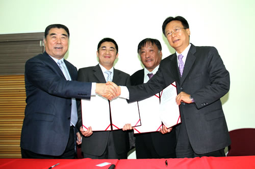 签署备忘录。从左至右为李成玉 、鲁芳校、 洪文博、卓伯源。本网记者记者 郭未名 摄