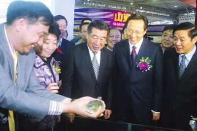 10月的成都,金秋送爽,丹桂飘香。开幕式前,回良玉饶有兴趣地参观了交易会展厅,一边仔细观赏种类丰富的优质农产品和深加工产品,一边认真听取展示情况介绍,不时与参展人员亲切交谈,详细了解农产品生产、加工和贸易情况。回良玉对各地在发展粮食生产、建设现代农业等方面取得的成就予以充分肯定,称赞本届农交会形式多样,内容丰富,主题突出,充分展示了农业农村发展取得的丰硕成果,生动描绘了“十二五”现代农业发展和社会主义新农村建设的美好前景。他说,要继续坚持农交会的办展宗旨和办会原则,利用农交会的影响力,不断推动农业国际合作,促进农产品流通体系建设,搭建好农产品贸易和交流合作平台。