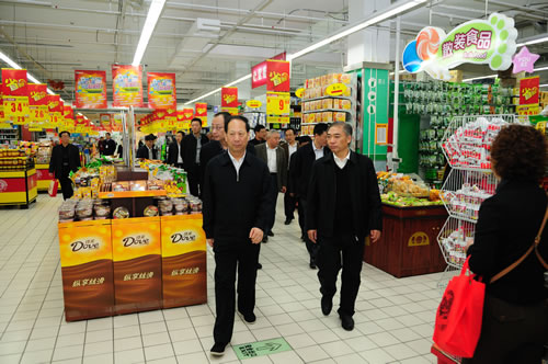 在苏果超市马群物流中心,石泰峰一行听取了苏果负责人发展连锁经营、强化供应链管理、扩大物流配送等情况的汇报,并对苏果超市发展连锁经营、强化供应链管理等方面工作进行了指导。