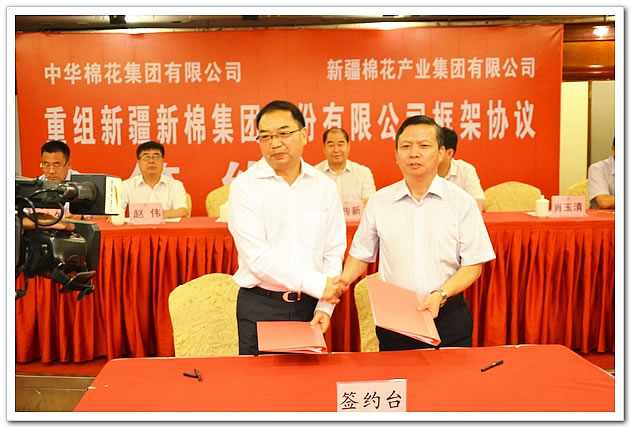 8月28日,中华棉花集团有限公司与新疆棉花产业有限公司重组新疆新棉集团股份有限公司框架协议签字仪式在乌鲁木齐举行。