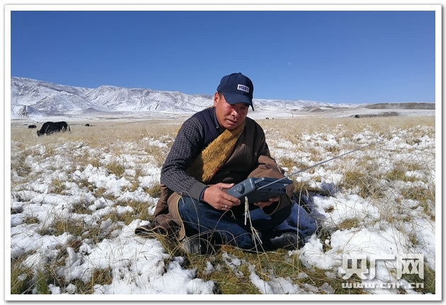 吉合生木在放牧途中收听广播(葛修远 摄)