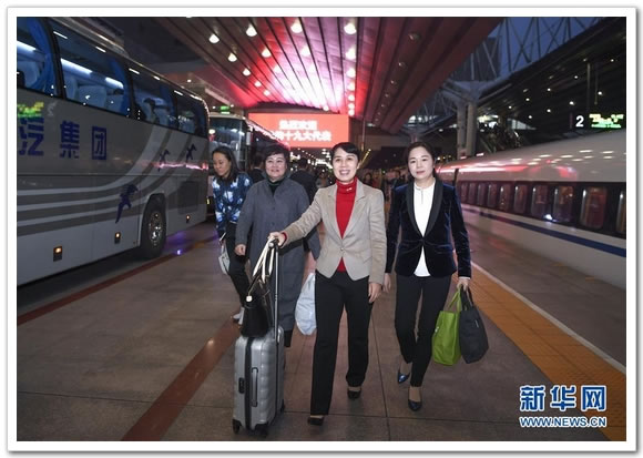 10月15日,来自湖北省的党的十九大代表抵达北京。新华社记者 张领 摄