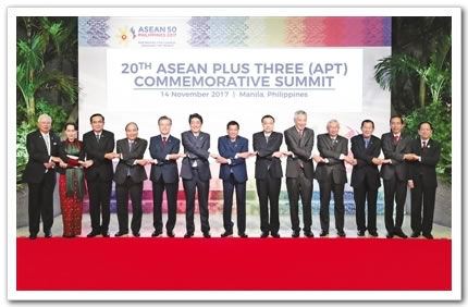 与会领导人高度肯定10+3合作对促进地区经济社会发展的意义及成果,欢迎中方为推动10+3合作提出的倡议。表示愿以10+3合作20周年为新契机,着眼长远规划,推进东亚经济共同体建设,加强机制建设,提升合作水平,扩大基础设施、贸易投资、金融、科技创新、人文等各领域合作,打造全方位互联互通,促进地区和平与繁荣。