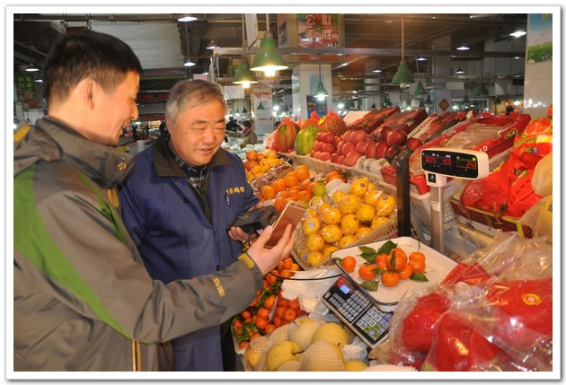 根据绍兴市政府部署,从2017年10月起,绍兴市供销合作社在下辖的大江市场开展了智慧市场试点改造工作,经过3个多月的建设,该市场成为具有智能支付、菜品溯源和下单配送上门三个功能板块的智慧市场。1月10日试运营当天,大江市场蔬菜经营户老张的POS机上已经完成5单手机支付的生意。“手机支付当然好啊,不用担心收到假币,也不用收钱找零了。”老张说,“而且扫码支付后买卖速度也加快了,对我们来说是件大好事。”老张还表示,菜品溯源功能也让经营户对自己的商品有了更高的要求,让菜品更加安全。