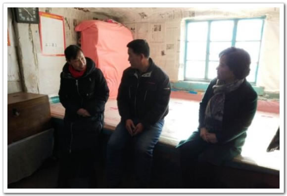 图为内蒙古供销合作社党组成员、理事会副主任金朝霞亲切看望了丰林嘎查5队村民周慧文。