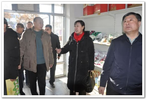 图为内蒙古供销合作社党组成员、理事会副主任金朝霞在乌兰浩特市供销合作社调研社有企业经营发展情况。
