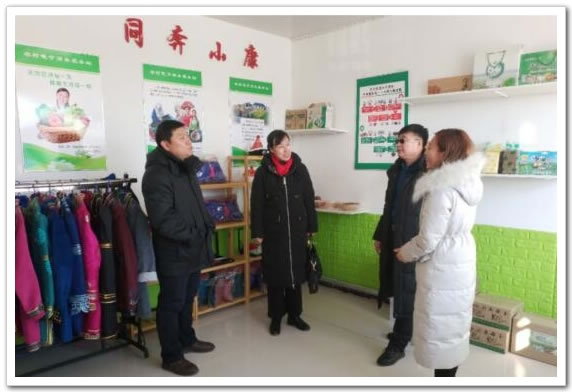 图为内蒙古供销合作社党组成员、理事会副主任金朝霞在科右前旗德柏斯镇蒙懿电子商务服务站调研电子商务发展情况。