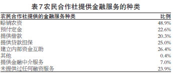 近年来,农民合作社从事产业门类、经营业态由过去单一的生产服务,向生产、供销、信用业务综合合作演变。据估计,超过一半的农民合作社提供产加销一体服务,服务总值达1.1万亿元。部分农民合作社积极开展内部信用合作,为成员提供融资服务,有效缓解了农户融资难问题。有的农民合作社与金融机构或者互联网贷款公司合作,引入外部信贷资源,发展供应链金融,解决成员产业发展中的资金瓶颈制约。