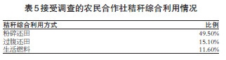 在应用绿色技术和保护生态环境方面,除了发展有机生产,减施农药和化肥之外,农民合作社还采取了其他的环保措施。例如,参与调查的农民合作社能够把49.5%的秸秆粉碎还田,15.1%的秸秆用于畜禽饲料过腹还田,还有11.6%将秸秆作为生活燃料。