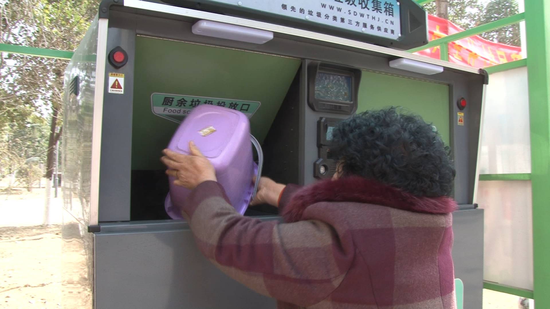 过年期间大家走亲访友,聚会吃饭,难免会产生一些剩菜剩饭、菜叶、果皮等垃圾。济南演马佳苑小区开展厨余垃圾分类收集试点,居民将剩菜剩饭、果皮、骨头等厨余垃圾专门放到垃圾收集桶里,每一户有一个专属的二维码,来到厨余垃圾收集箱前,举起桶盖对准设备上扫码器进行扫描,投放口自动开启,就可以把厨余垃圾投放进设备中,后台系统会自动记录居民投放重量和次数。春节七天假期,小区平均每天约80户居民投放,日均投放厨余垃圾达到了240公斤。