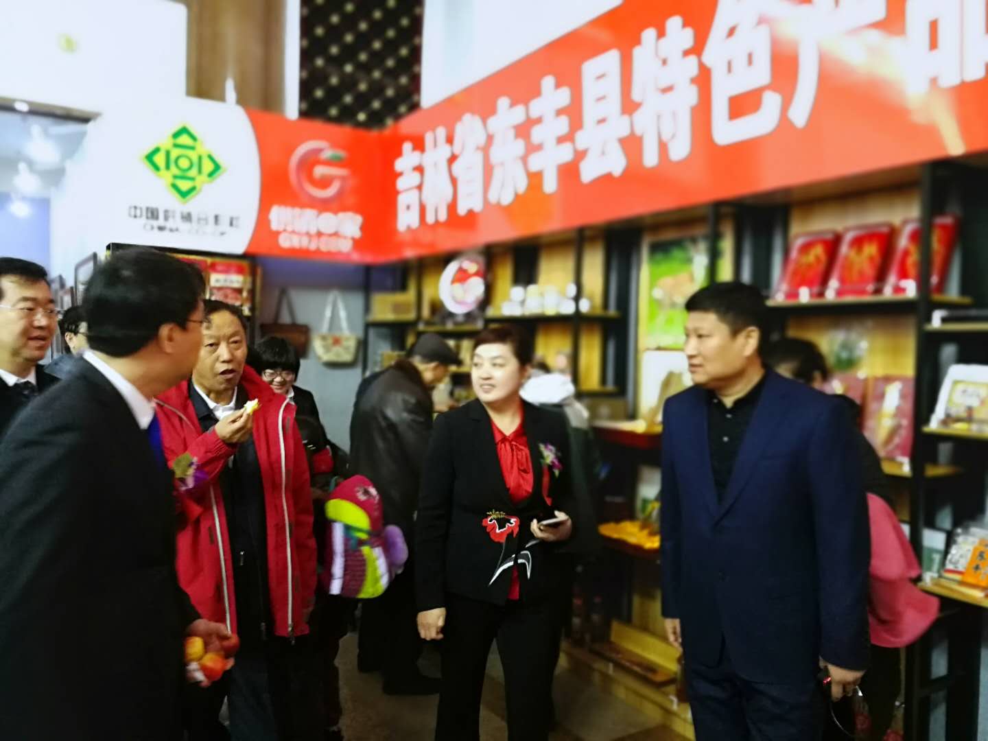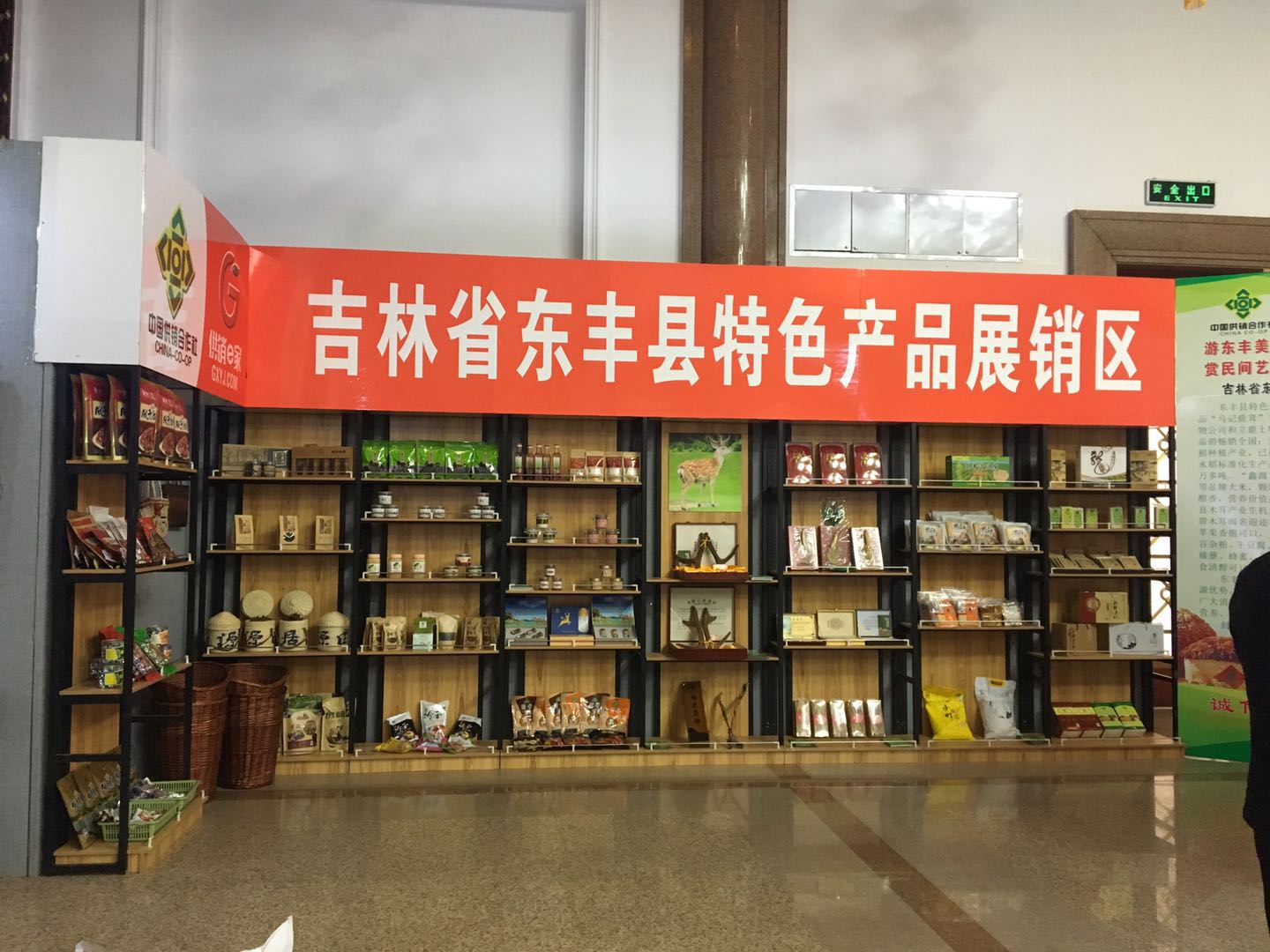 此次画展中,设置了吉林省东丰县特色产品展销区,东丰县供销社共准备了8大类100多款产品进行展览。从准备产品到展台布置,再到对东丰地产产品的推广都下足了力气。县委书记郑一明对东丰县供销社所做的工作给予了充分肯定。很好的体现了此次画展品鹿乡美食,赏民间艺术的目的。在画展期间,中华供销合作总社的同仁们也来莅临指导,对东丰县供销社所做的工作给予充分的肯定。对东丰的产品也啧啧称赞。