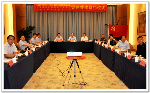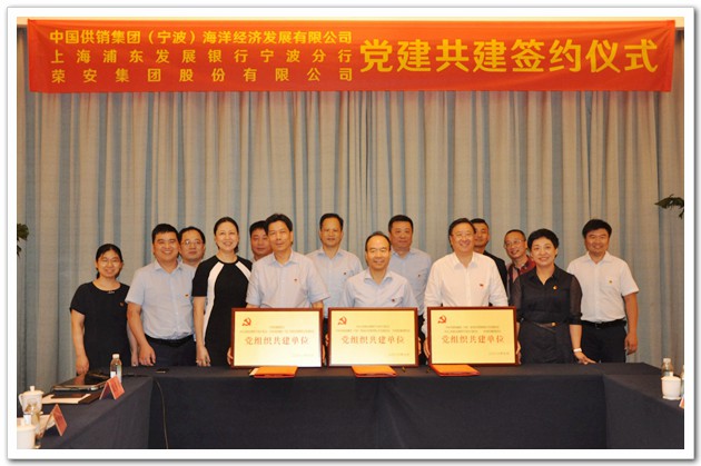 宁波海洋公司党支部委员、浦发银行党委委员、荣安集团党委委员和三方党员代表参加签约仪式。