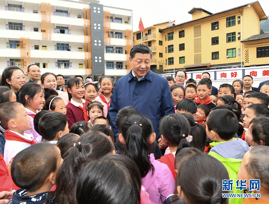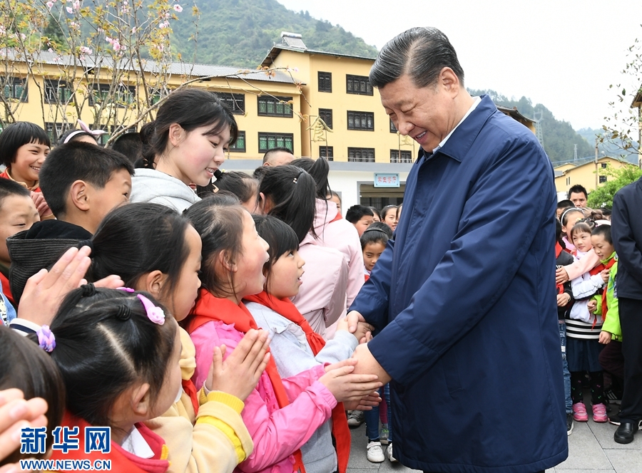 习近平首先来到中益乡小学。学校操场上,小学生们正在开展课外文体活动。看到总书记来了,学生们围拢过来,纷纷问习爷爷好,总书记高兴地同大家交谈,询问他们学习和生活情况。中益乡地处大山深山之中,群众居住比较分散,孩子上学是个难题。习近平指出,“两不愁三保障”,很重要的一条就是义务教育要有保障。再苦不能苦孩子,再穷不能穷教育。要保证贫困山区的孩子上学受教育,有一个幸福快乐的童年。习近平走进师生食堂,仔细察看餐厅、后厨,了解贫困学生餐费补贴和食品安全卫生情况。习近平嘱咐学校和老师既要当好老师,又要当好临时家长,把学生教好、管好。要把安全放在第一位,确保学生在学校学、住、吃都安全,让家长们放心。他希望老师们扎根山区,献身乡村教育事业,为群众脱贫贡献一份力量。