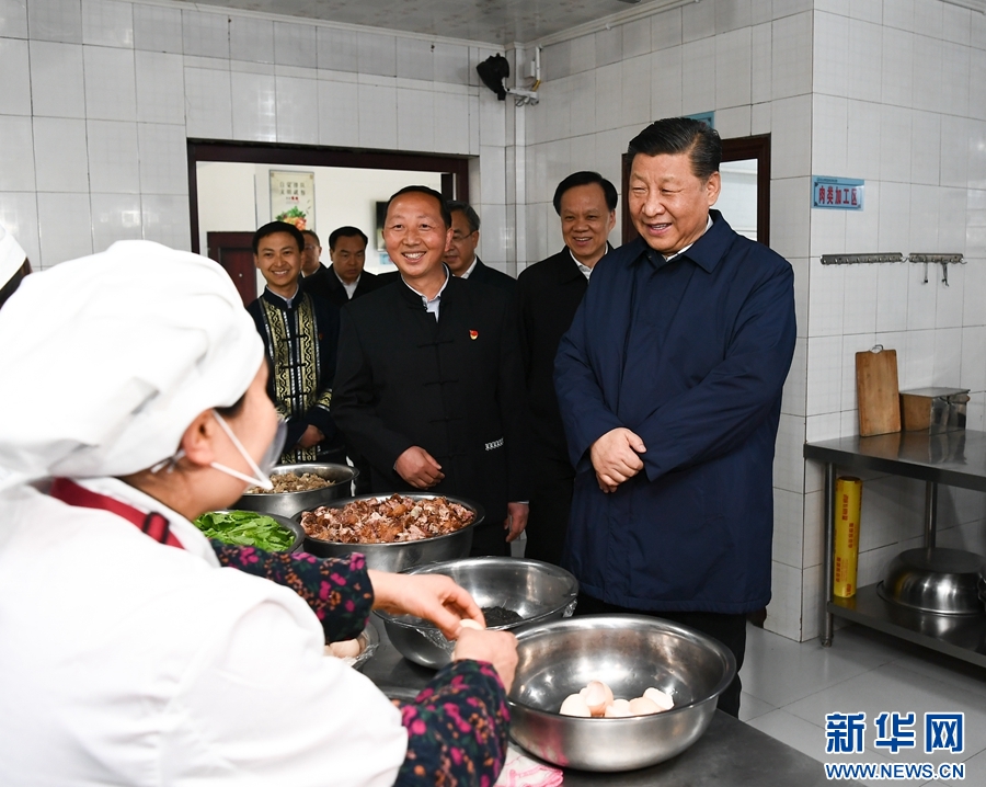 这是4月15日下午,习近平在石柱土家族自治县中益乡小学走进师生食堂,了解贫困学生餐费补贴和食品安全卫生情况。 新华社记者 谢环驰 摄