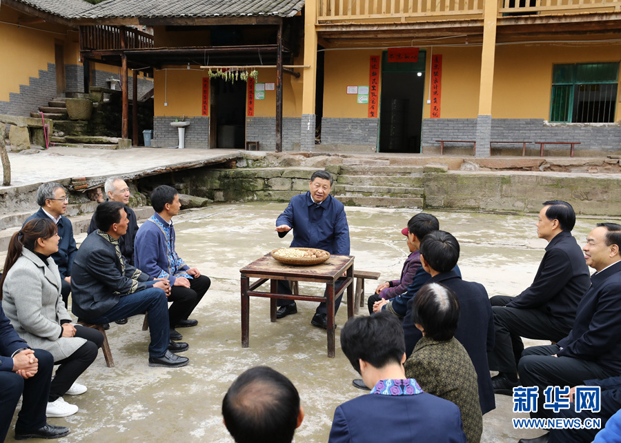 这是4月15日下午,习近平在石柱土家族自治县中益乡华溪村看望贫困户谭登周一家。 新华社记者 谢环驰 摄