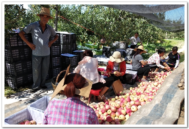 今年,陕西省永寿县早熟苹果喜获丰收。县供销合作社引导果农顺价销售苹果,并联系四川、江西等地果商云集永寿,及时销售苹果,受到了果农的称赞。图为8月12日县社联系四川广元的果商在永寿县监军街道办永安村果园装箱嘎啦苹果销往市场。